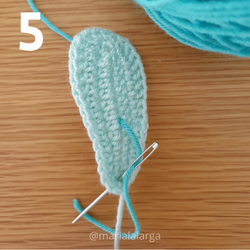 Teje 5 pétalos iguales. |
