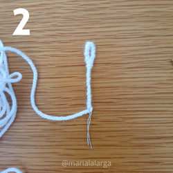 júntalos. Enrolla el hilo de manera que sujete ambos lados, baja