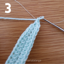 quieras), cose una línea recta desde la mitad